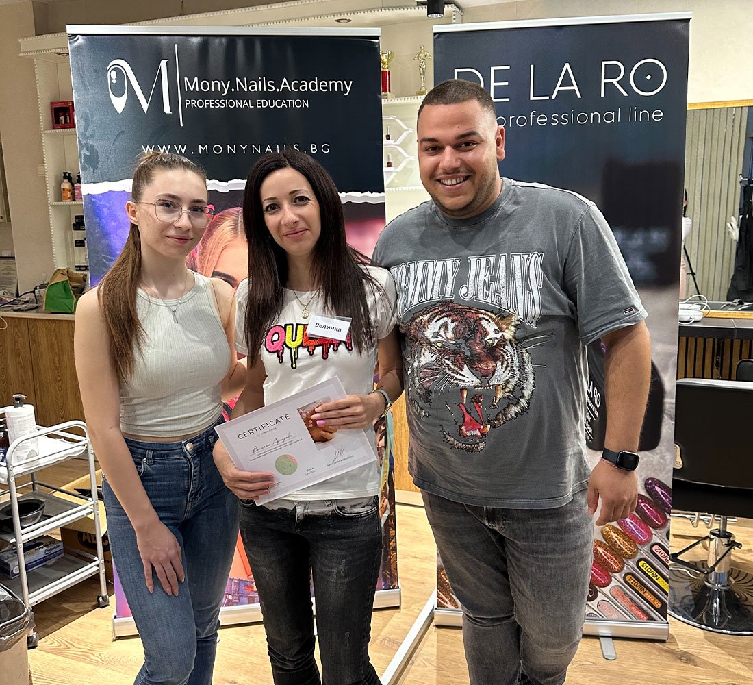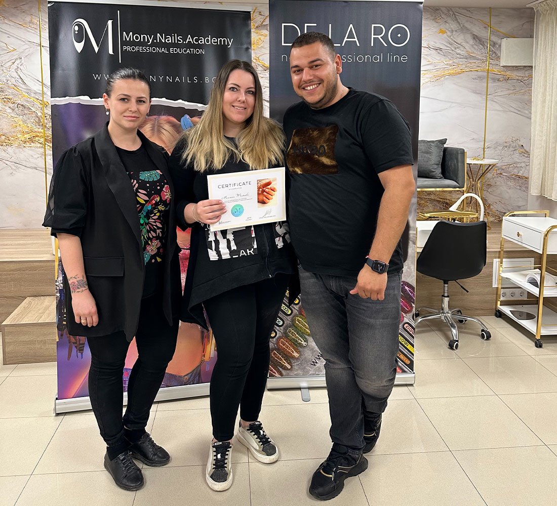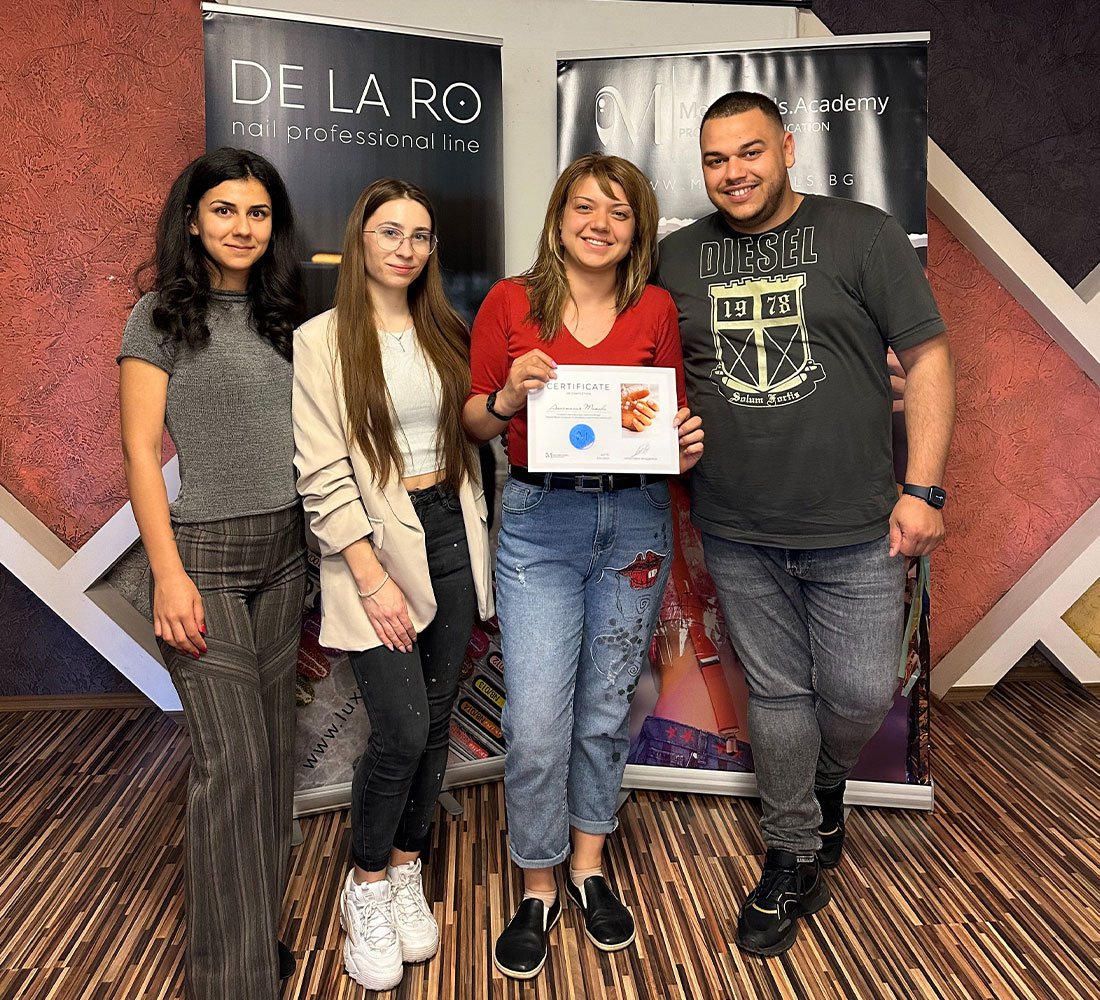 От сърце благодаря за търпението, вниманието и отдадеността, които вложихте в моето обучение. Благодарна съм за всяка минута, за всички малки тънкости и големи уроци, които ми предадохте. Научих не само техники и умения, а и как с любов и отношение се създава красота. Благодаря ви, че вярвахте в мен ме вдъхновихте да вървя напред с увереност и желание да се развивам!