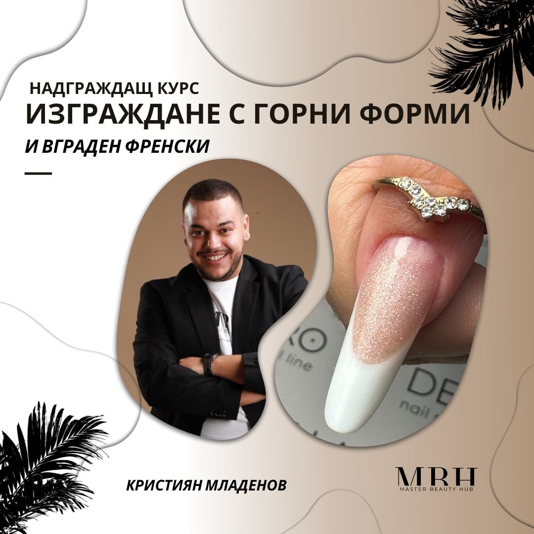 Курс за Маникюристи: “Изграждане с горни форми и вграден френски маникюр със силиконови легла” Добре дошли на нашия специализиран надграждащ курс за маникюристи, посветен на съвременните техники за създаване на вграден френски маникюр с горни форми и силиконови легла. Този курс е предназначен за професионалисти в областта на маникюра, които желаят да надградят своите умения и да предложат на своите клиенти най-модерните и издръжливи дизайни.